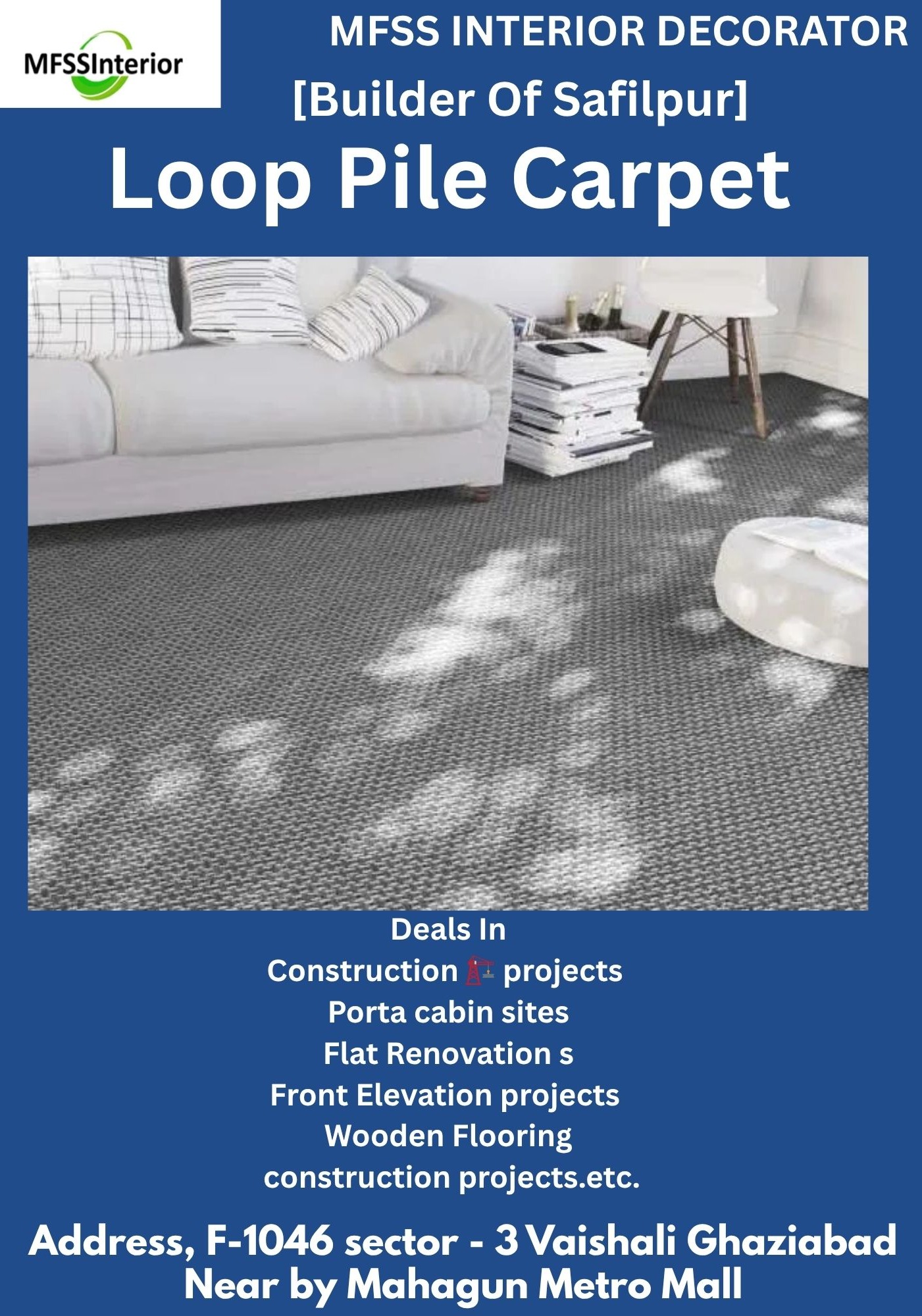 Here’s a detailed write-up for Loop-Pile Carpet Work in Maliwara, Ghaziabad — includes what the work involves, materials, cost factors, and a sample scope of work / quotation template. Let me know if you want me to customize the quotation for your specifications. What is “Loop Pile Carpet” A loop pile carpet is one where the carpet fibers are looped instead of cut. This gives a textured look, good durability and resistance to crushing. Great for high traffic areas. Key Considerations in Maliwara, Ghaziabad Climate / Dust: Ghaziabad can be dusty, so carpet needs good backing and possibly tighter loops to handle dirt. Moisture & Dampness: If installed over ground floor, concrete, or in basements, moisture barrier or subfloor preparation is important. Traffic Use: Is it for a home, shop, office, or commercial? Higher footfalls require heavier duty loop pile. Availability: Local suppliers of loop pile carpets, backing materials, adhesives etc are accessible in Ghaziabad. TradeIndia TradeIndia Materials & Components Component Options / Specification Carpet Material Wool, polypropylene, nylon, or mixed blends. Loop pile (hair-on/hair-off) etc. Pile Weight & Loop Height Heavier weight = more durable; loop height around 4-10 mm depending on texture. Backing Primary backing (jute / synthetics), secondary backing for stability. Adhesive / Seam Tape For joining carpet seams and fixing edges. Under-lay / Padding Optional but increases comfort, sound insulation, extends life. Trimming / Edge Binding To finish edges neatly. Process of Loop Pile Carpet Installation Site Survey & Measurement Measure area accurately (length × width). Check floor is level, free from nails, debris etc. Inspect for moisture / dampness. Subfloor Preparation Clean the surface. Fill cracks, level the floor if needed. If required, apply moisture barrier or primer. Choosing Carpet & Accessories Select loop pile carpet as per usage & design. Choose backing, underlay. Cutting & Layout Roll out the carpet, cut with allowance. Plan seam placement to minimize visible seams. Fixing / Laying Place underlay (if used). Lay carpet, stretch and fix edges using tack strips or adhesive as required. Seams joined using suitable tape or stitching. Trimming & Finishing Trim edges cleanly. Bind or finish edges. Clean the carpet, remove loose fibers. Inspection & Handover Check for wrinkles, bubbles, alignment of pattern (if any). Resolve defects. Cost Factors Labor / Installation cost: Depending on complexity (seams, room shape, obstacles) plus subfloor prep. Backings & underlay cost extra. Transportation / Handling: Getting rolls to the site, carrying into rooms may cost. Edge finishing & binding cost depends on material & length. Sample Scope of Work / Quotation Template Here’s a sample you can use for quoting loop pile carpet work: Quotation for Loop Pile Carpet Work Description Details Client Site / Address Maliwara, Nehru Nagar, Ghaziabad Date Validity Work to Be Done Material: (e.g., 100% wool / polypropylene) Pile height: mm, Pile weight: gsm Backing: Under-lay: (Yes/No) Subfloor Preparation Cleaning, leveling, moisture barrier (if needed) Installation Layout, seam placement, trimming, edge binding Finishing & Clean Up Remove debris, final inspection