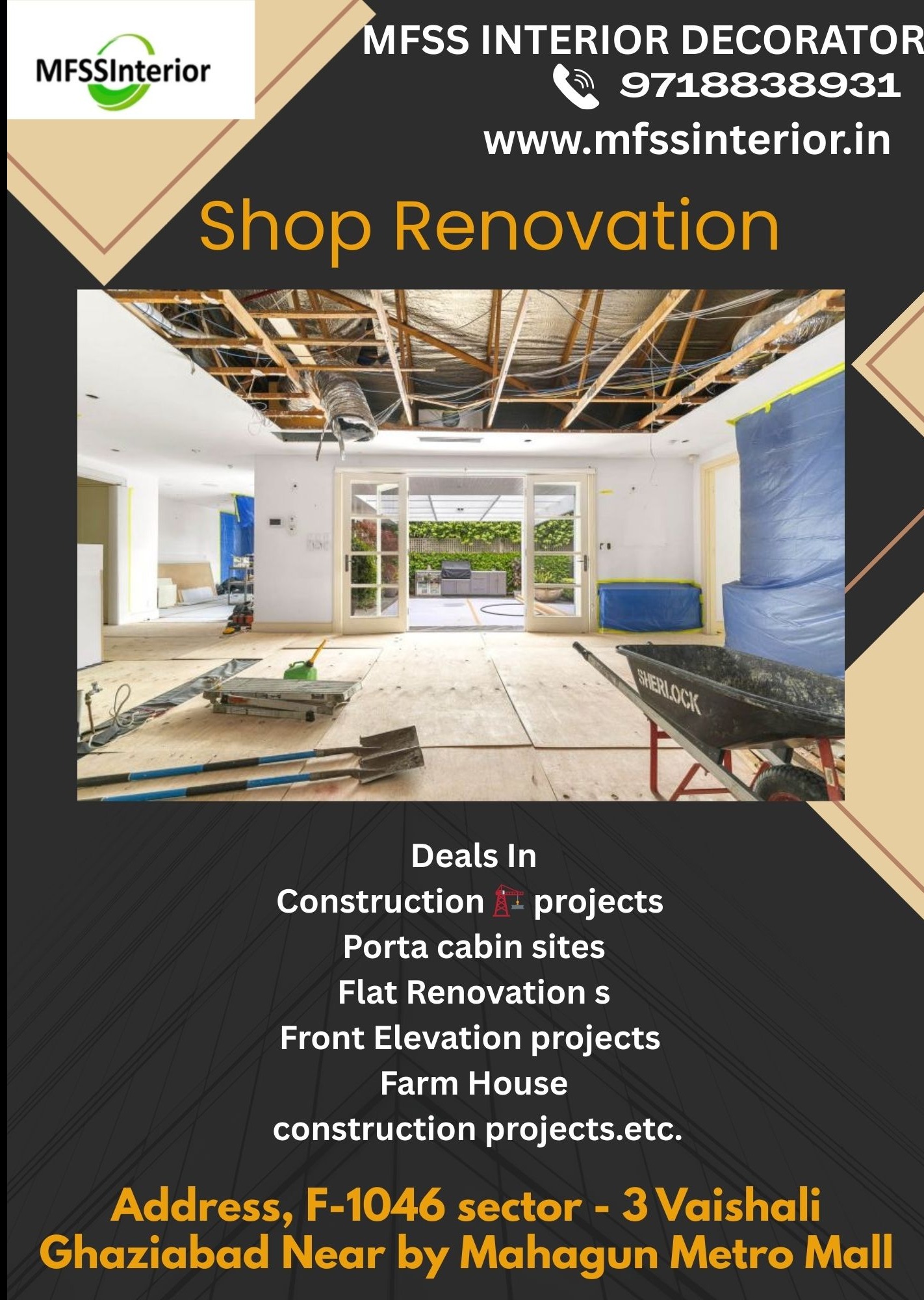 A shop renovation means upgrading or remodeling a retail space to improve its look, functionality, and customer experience. It’s often done to attract more foot traffic, modernize interiors, or match a new brand identity. 🛠️ Key Aspects of Shop Renovation 1. Planning & Design Define purpose: facelift, expansion, or full redesign. Align design with your brand identity. Plan budget, timeline, and downtime (important so business isn’t disrupted too long). Obtain permits if structural work is involved. 2. Layout & Space Optimization Customer flow: ensure easy movement and visibility of products. Zoning: entrance, product display, billing counter, trial rooms (if fashion), storage. Lighting design: highlight products with accent lighting, warm tones for ambiance. 3. Interior & Exterior Renovation Flooring: vinyl, tile, polished concrete, or wood depending on theme. Walls: repaint, wallpapers, or feature walls for branding. Ceilings: false ceilings with LED lighting for a modern look. Signage & façade: upgrade storefront for visibility and curb appeal. 4. Fixtures & Furniture Display racks, shelves, and counters designed for easy access. Modular furniture for flexibility. Comfortable customer seating (if needed). 5. Technology & Utilities POS counters, billing systems, and security (CCTV, alarms). Air conditioning & ventilation. Smart lighting or interactive displays for a modern retail feel. 6. Branding & Ambience Consistent color themes. Digital signage, posters, and product highlight zones. Background music and fragrance (in lifestyle or clothing stores). ✅ Benefits of Shop Renovation Increases customer attraction & retention. Boosts sales by improving product visibility. Strengthens brand identity. Enhances staff productivity with better layout. Improves property value.